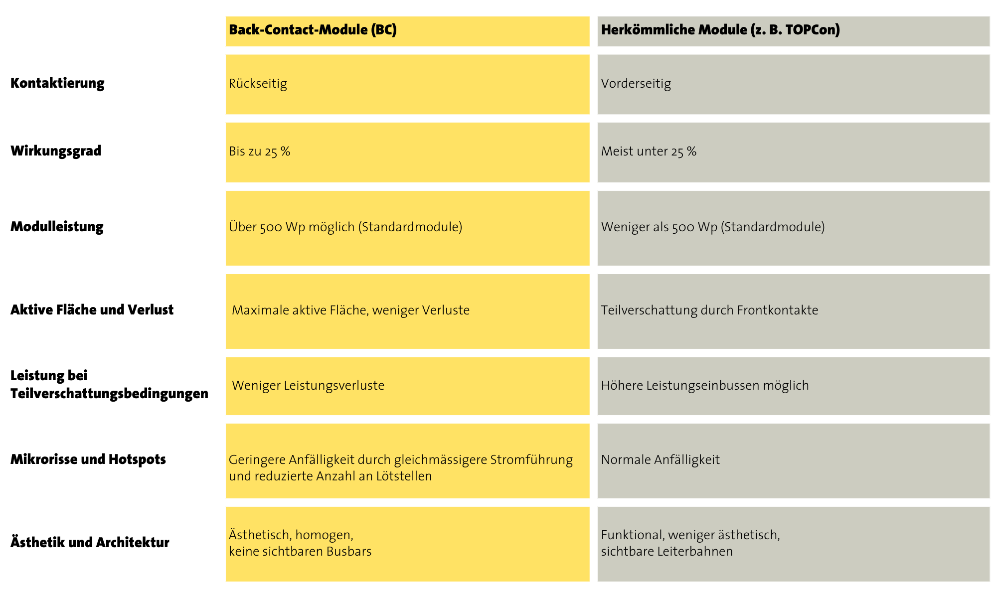 Back-Contact-Module weisen im Vergleich zu herkömmlichen Module mehrere Vorteile auf.