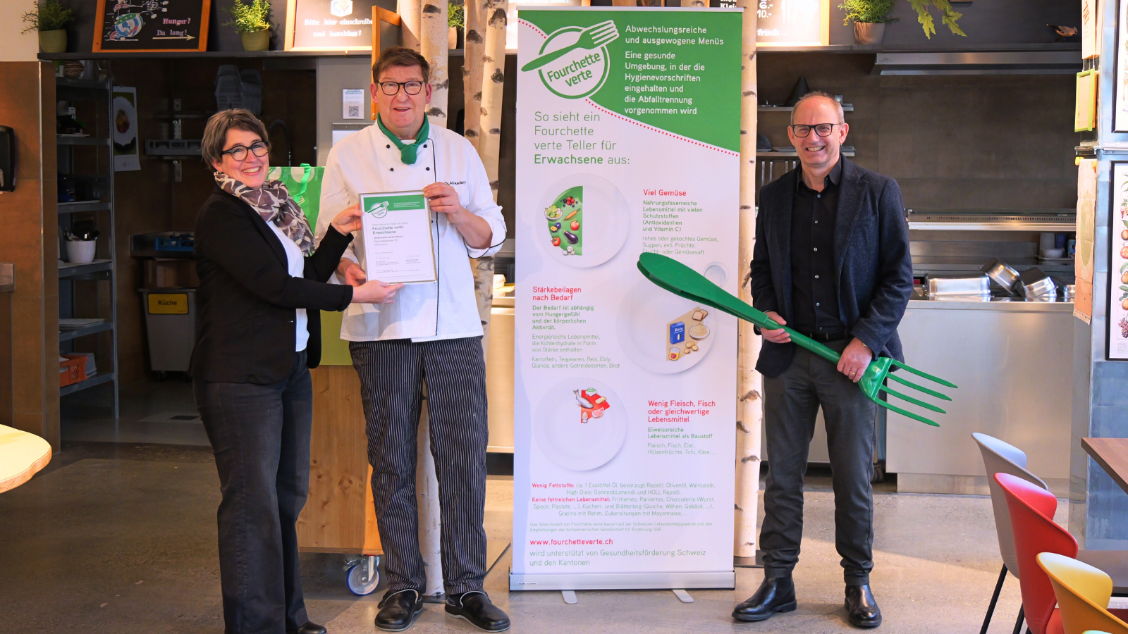 Les critères de Fourchette verte sont basés sur les recommandations nutritionnelles officielles de l'OSAV et de la SSN. Le fait que notre cuisine réponde à ces critères exigeants témoigne de la qualité du travail quotidien de notre chef cuisinier.
