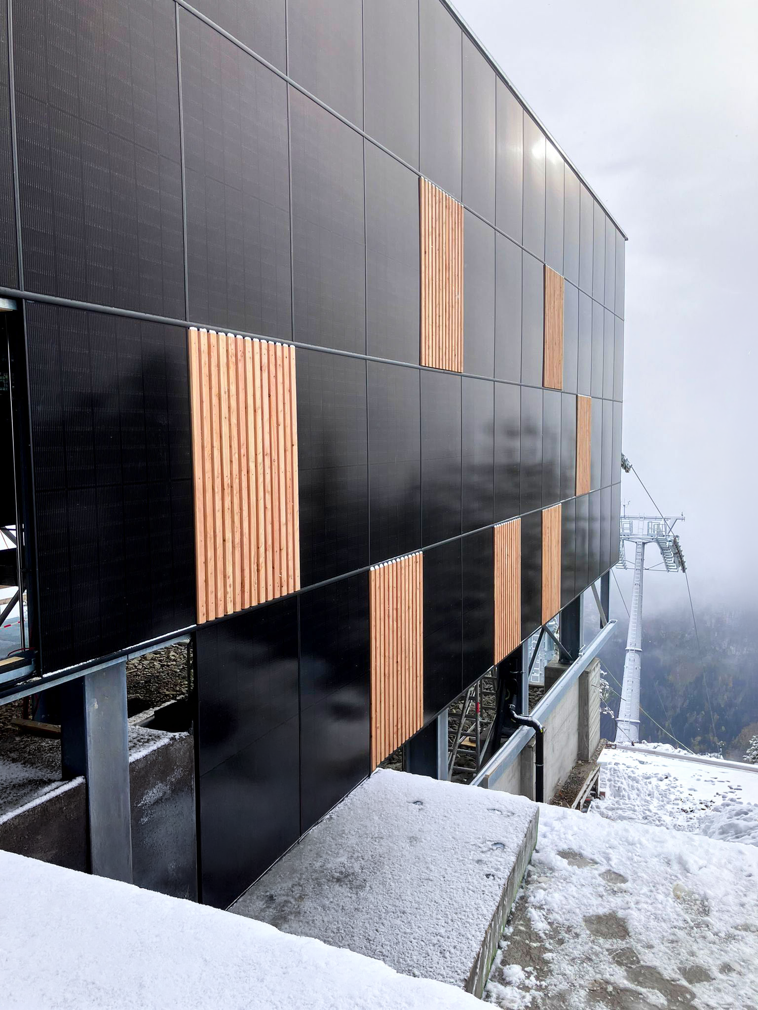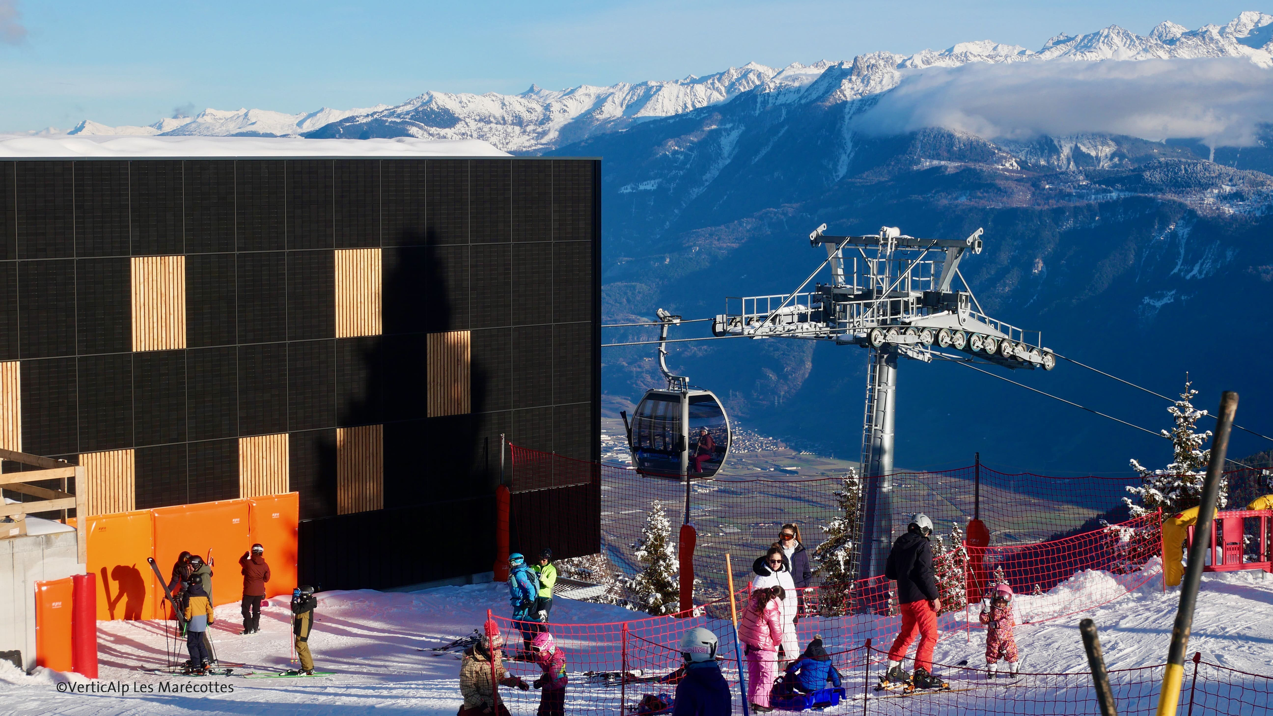 Dans le domaine skiable des Marécottes, la station de téléphérique montre comment l'architecture et l'énergie solaire peuvent être combinées efficacement. Plus de 500 m² de façades photovoltaïques intégrées au bâtiment assurent une production d'électricité fiable, même lorsque les toits sont recouverts de neige en hiver. Un projet qui montre de manière impressionnante le potentiel du BIPV, en particulier dans les régions alpines.