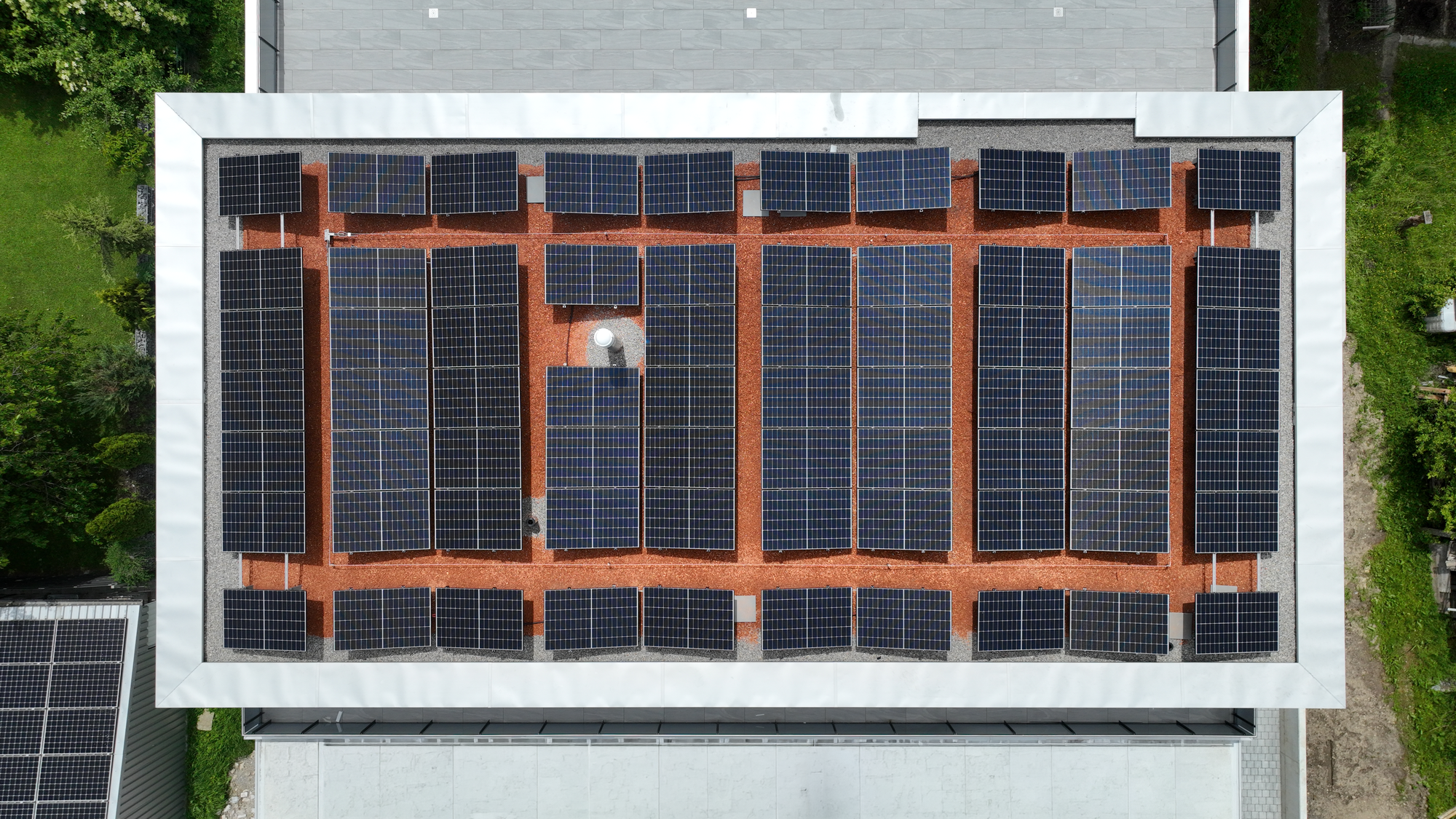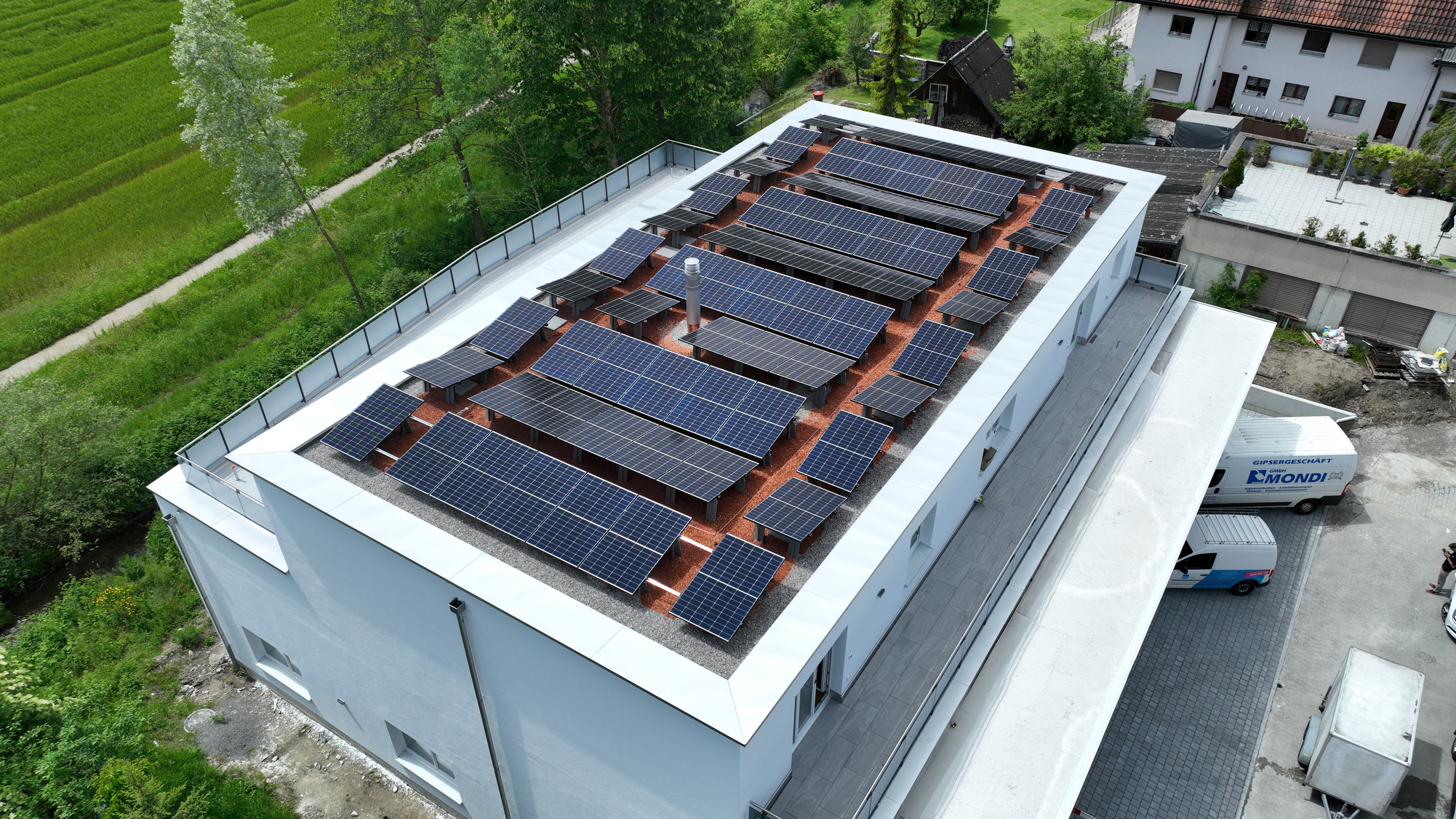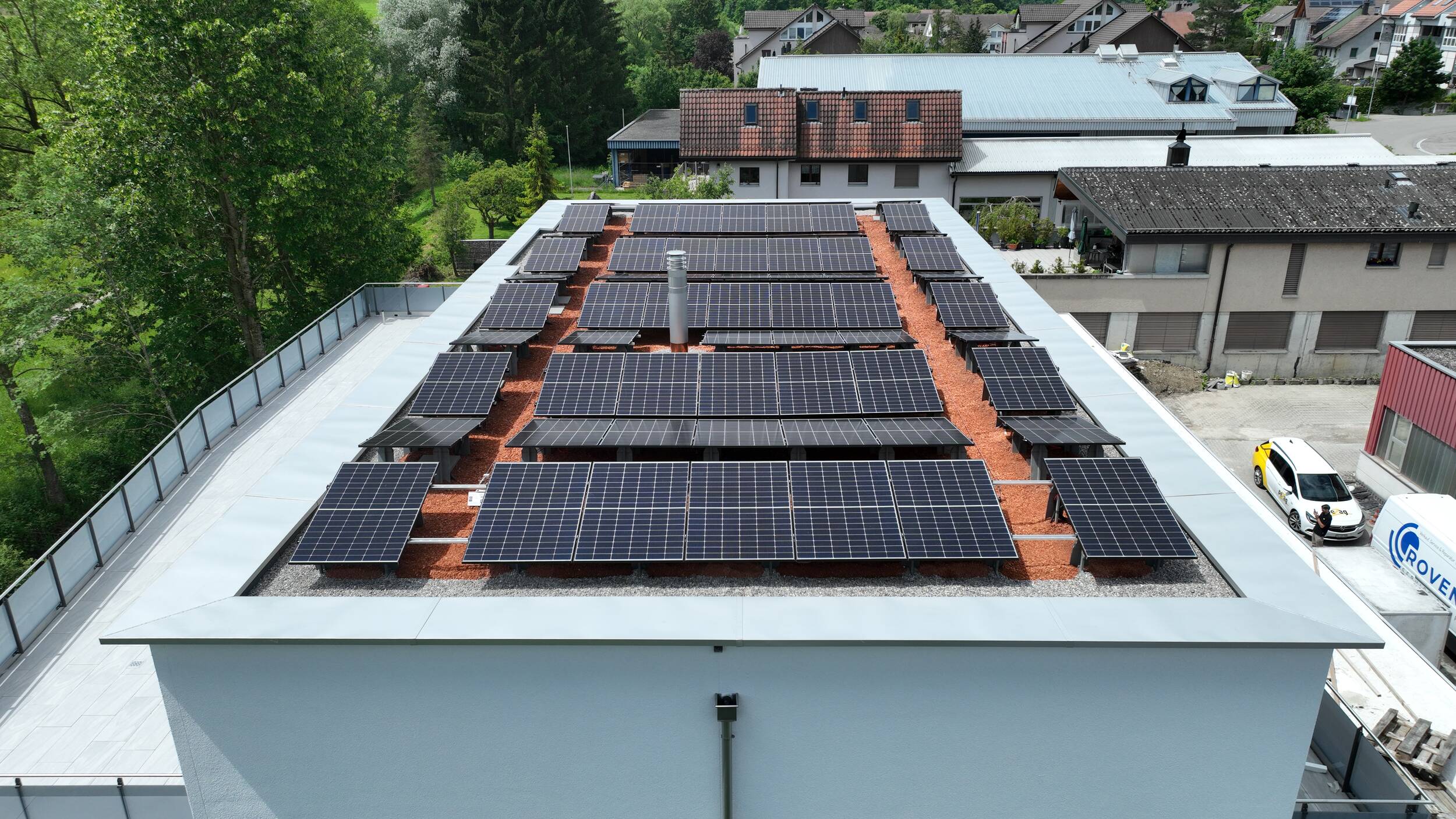 Malgré des conditions difficiles, l'installation photovoltaïque a pu être réalisée avec succès et dans les délais impartis. D'une puissance de 30 kWc, elle séduit par son rendement élevé et son intégration harmonieuse au toit végétalisé. Elle fournit une énergie durable de manière fiable et répond à la fois aux exigences techniques et esthétiques.